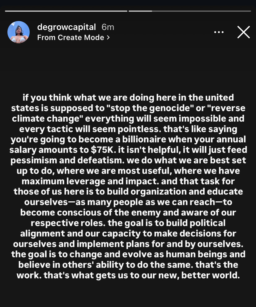 I (read we) cannot get caught up in the comfort of the global north and give into despair or pessimism and must keep going.