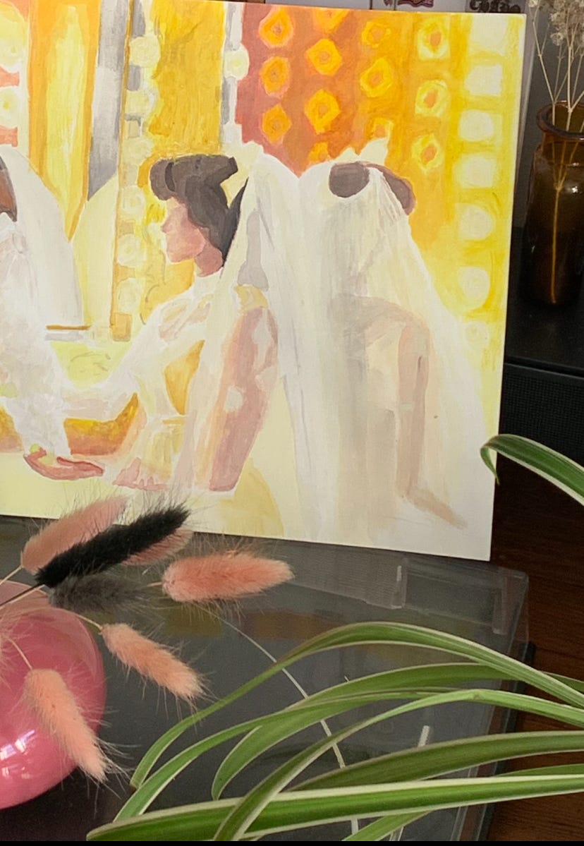 This painting my best friend since High School made me for Mommy Dee’s anniversary. It’s a version of this photo I love from her wedding day.